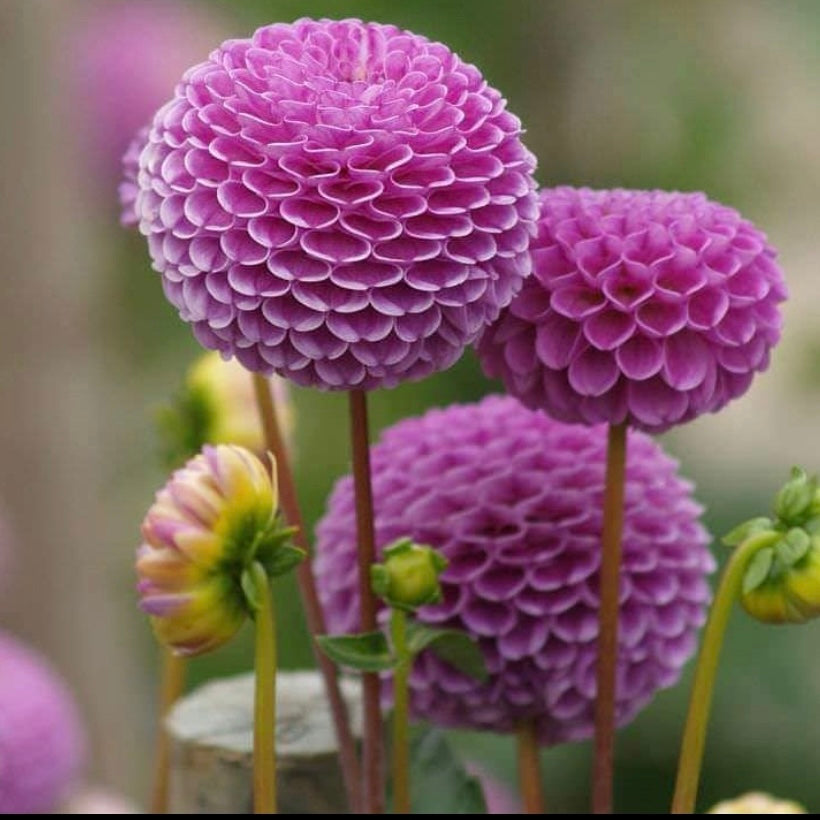 A cute little lilac pompon that is very productive and makes great tubers.